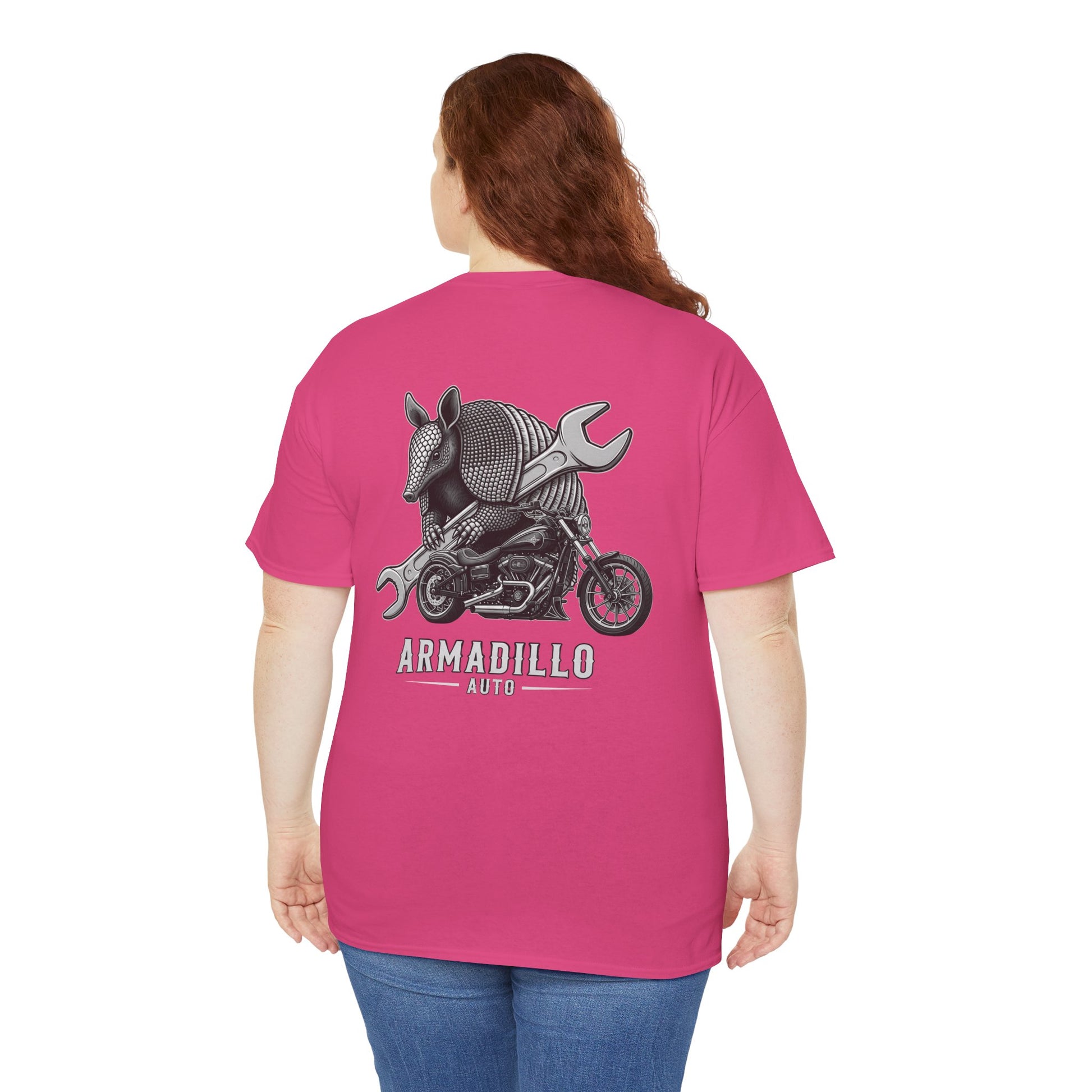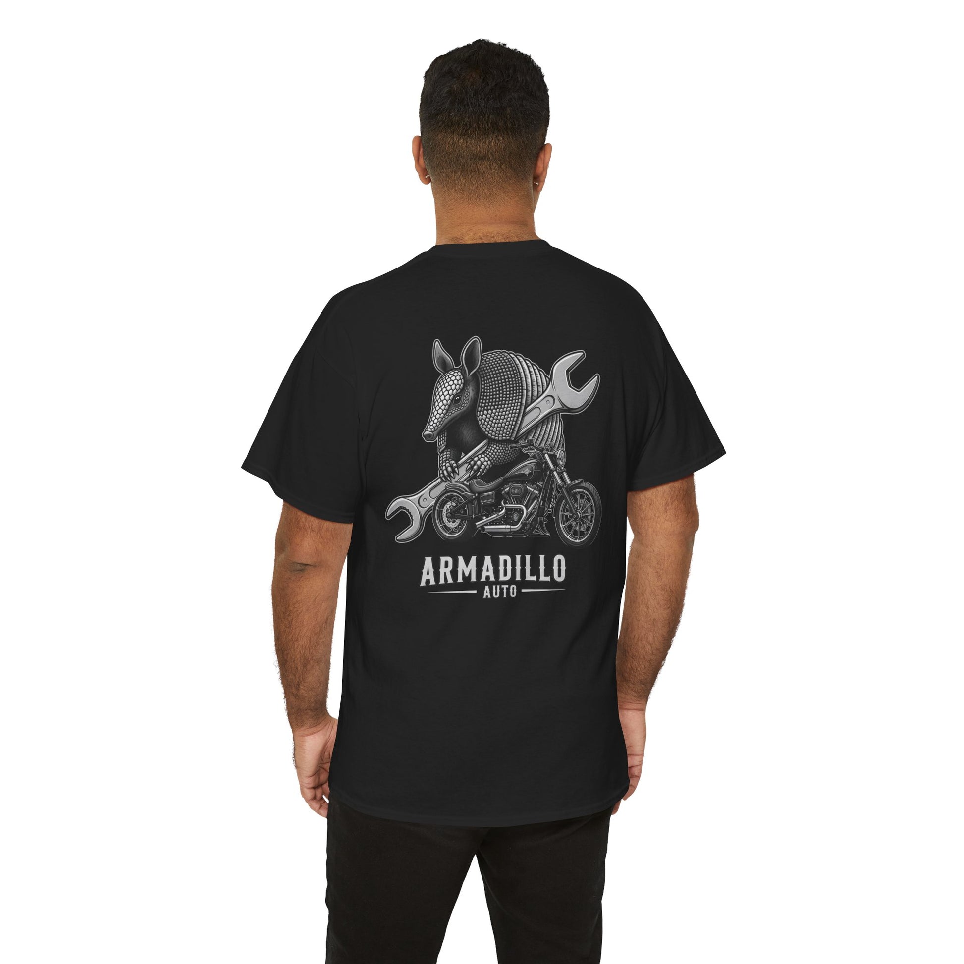 An official Armadillo auto tee that exudes a cool and casual vibe, perfect for everyday wear or as a statement piece. Ideal for adults looking for a unique and bold addition to their wardrobe. Relevant for auto enthusiasts and fans of Armadillo. Suitable for casual outings, car shows, and automotive events.